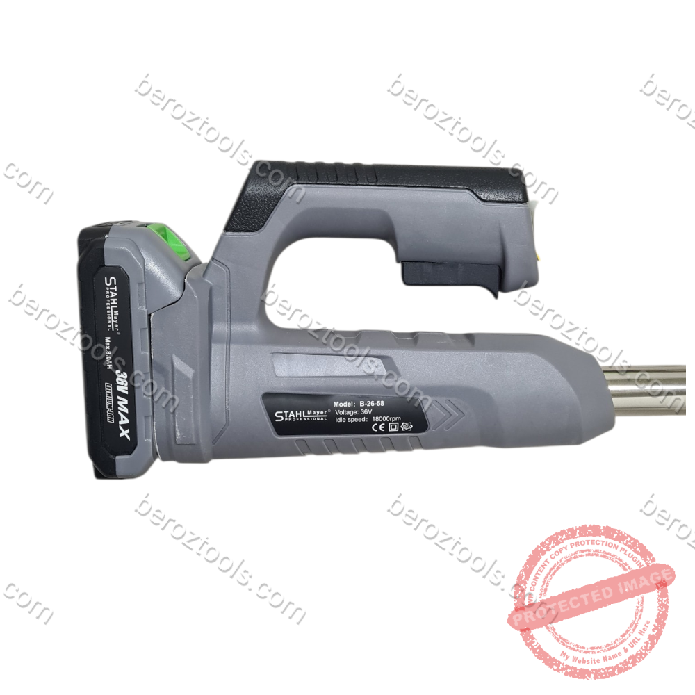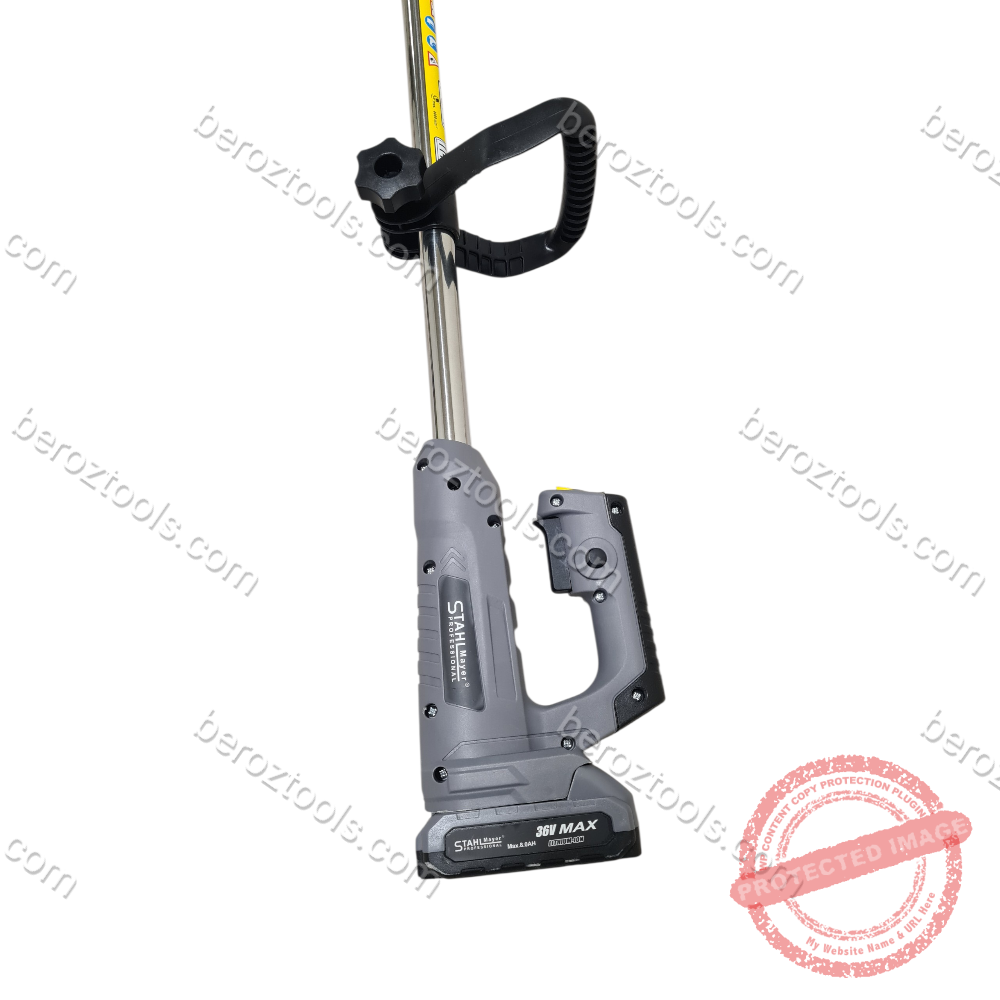 Акумулаторен тример с телескопична дръжка за косене на трева и почистване на храсти.Предлага гъвкавост при работа без нужда от захранващ кабел и е изключително лек и компактен. Работи с 36V 8AH Li- Ion батерия,достига скорост на ножа до 9000 об/мин и има работна ширина 15-245мм.Време за зареждане 2-3 часа.Време на работа със заредена батерия около 50 мин.Телескопичната дръжка е регулираема от 93см до 125см.