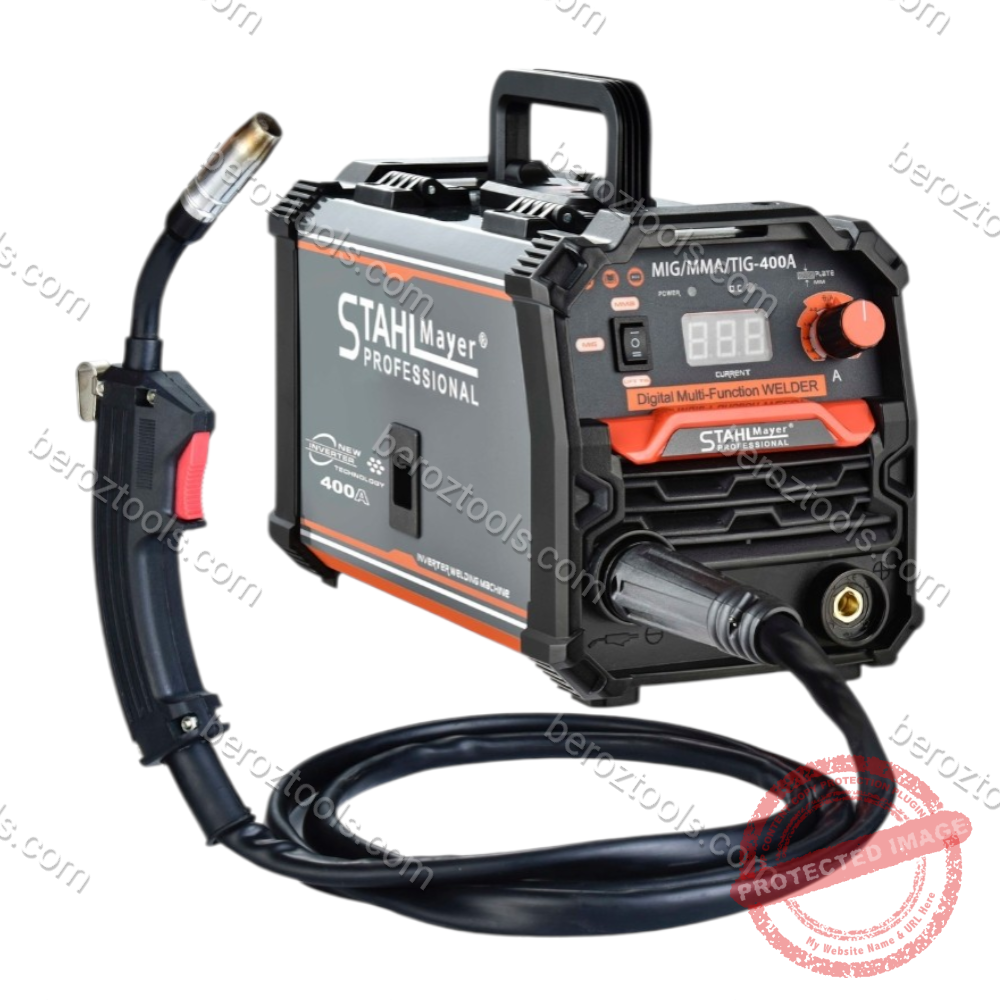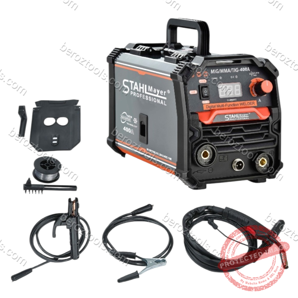 Комбинираният инверторен телоподаващ апарат STAHLMAYER PRO MIG/MAG/MMA 400A е мощно и компактно решение за заваряване без газ, подходящо както за домашни майстори, така и за професионална употреба. Работи с флюсова тел на 1 kg ролка, което елиминира нуждата от СО₂ бутилка и прави апарата изключително мобилен и удобен.