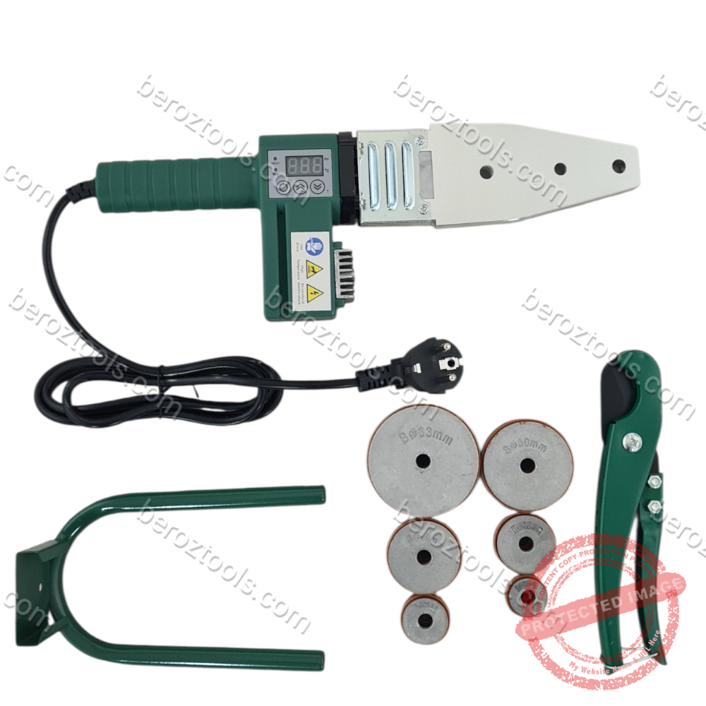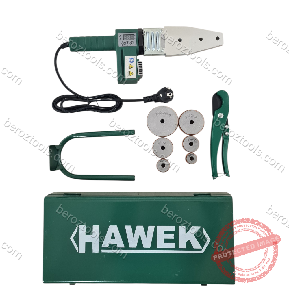 Професионалната лепачка за полипропиленови тръби HAWEK е мощно и надеждно устройство с мощност 1500W, създадено за бързо, качествено и сигурно заваряване на ППР тръби. Благодарение на включените накрайници с размери от 20 до 63 мм, уредът е подходящ както за домашни ремонти, така и за професионални водопроводни инсталации.
