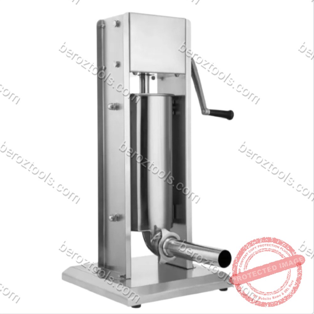 Механичната пълначка за колбаси е с вертикално разположение-дизайн,смятан от мнозина за много по-удобен.Лекотата на работа се дължи в голяма степен на силата на земното притегляне.В този случай месото само се насочва към отвора,следователно са нужни много по-малко усилия за избутването му през фунията.Обемът на контейнера е 5 литра.Това говори за висока производителност на уреда и за максимална ефективност в професионална среда.Буталото с чиято помощ месната заготовка се избутва към отвора,се задвижва посредством манивела.Ергономичната ръкохватка пести усилия и ускорява значително прозводствения процес.Комплектът включва 4 броя фунии с различен диаметър 16мм,22мм,32мм и 36мм за приготвяне на всичко-от тънки наденички и карначета до дебели луканки и бабеци.