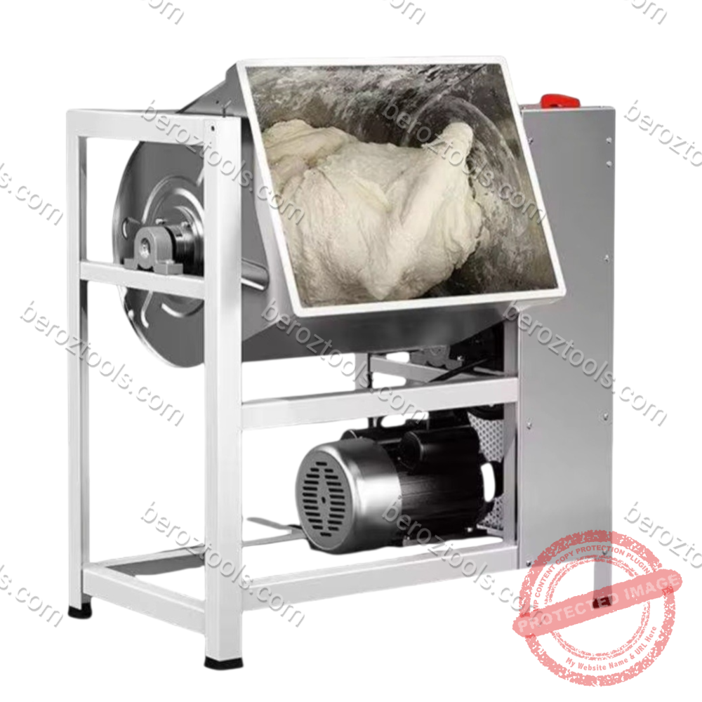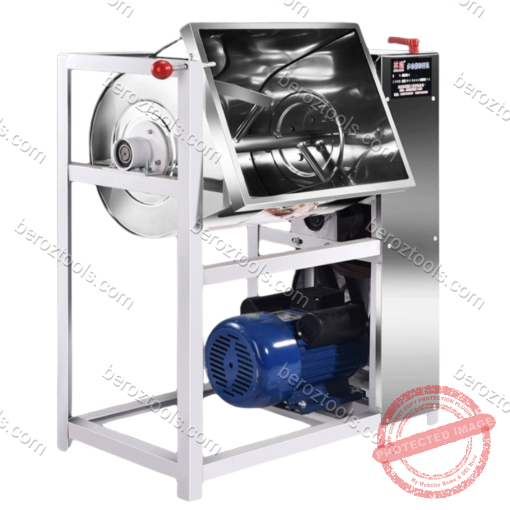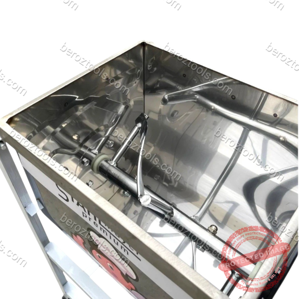 Електрическата бъркалка за смеси е идеалният междинен избор за малки месарници,заведения или за хоби майстори,които правят домашни колбаси и хляб.Тя спестява огромно количество физически труд и гарантира перфектно разпределяне на подправките.Проектирана за интензивна употреба,осигурявайки хомогенно смесване на месо,подправки и добавки,както и за месене на меки теста.Масивната конструкция и мощният мотор я правят надежден партньор във всяка кухня или цех.Капацитетът от 15кг позволява обработка на големи партиди само за няколко минути.Моделът предлага функция „реверс“,която гарантира,че няма останали „мъртви зони“ в казана.Изработена изцяло от неръждаема стомана (inox),която е устойчива на корозия и лесна за почистване.Оборудвана с гумени крачета против хлъзгане или здрава основа за работа без вибрации.Силата идва от еднофазен мотор, който поддържа постоянна скорост и стабилна работа дори при пълен капацитет от 15 кг.