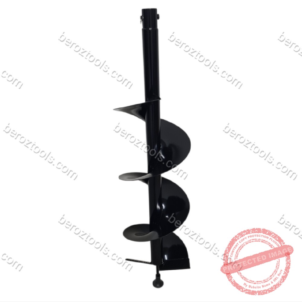 Свредло за моторен свредел е с дължина 800 мм, широчина 250 мм и диаметър на монтажния отвор 20 мм. Изработен е от висококачествена стоманена сплав с издръжливост и устойчивост на повреди. Предназначен е за използване с моторен свредел за удобно пробиване на дупки в земята за разсад, стълбове, проводници, огради, подпори и всякакви дейности, при които се изисква пробиване на почвата.
