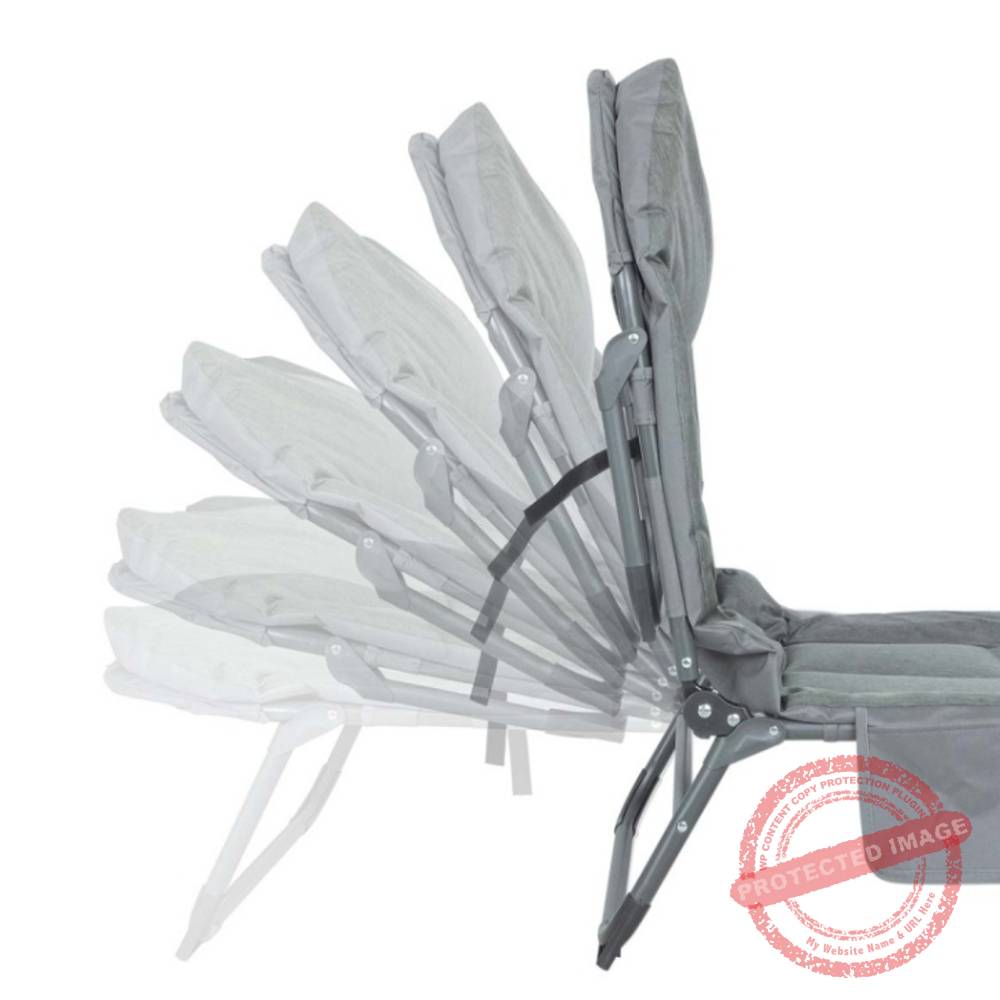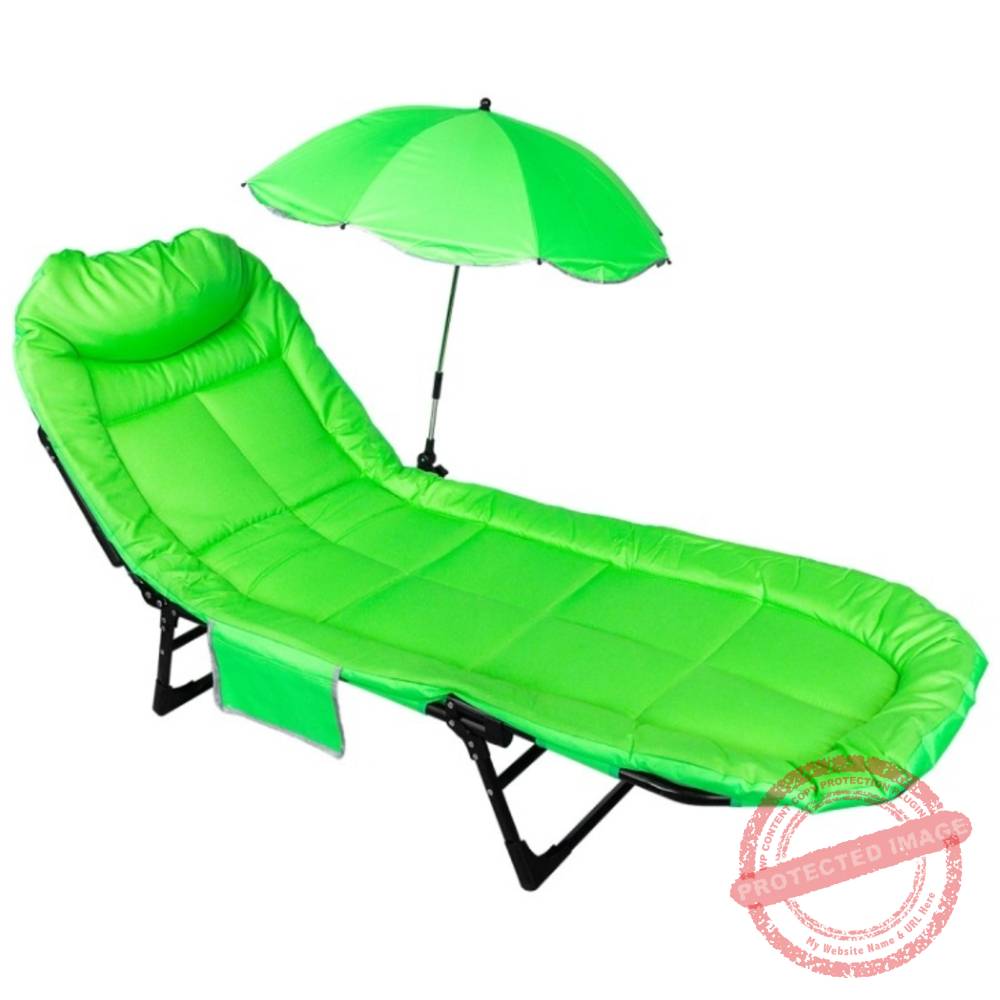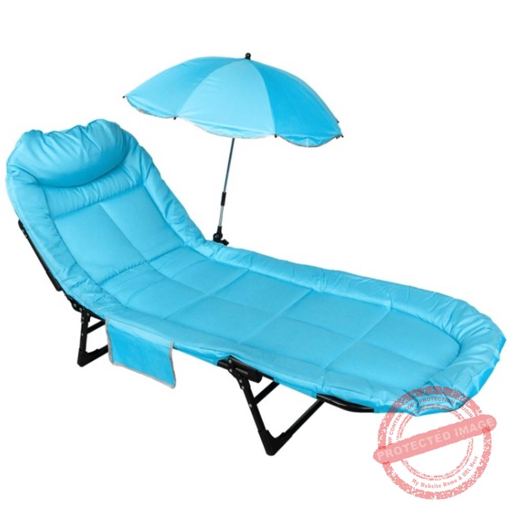 Проектиран с мисъл за комфорта и практичността,този шезлонг е идеалният спътник за плажа,градината,край басейна или по време на къмпинг.Той разполага с регулируем вграден чадър,който осигурява сянка точно там,където ви е необходима.Меката подплатена повърхност и вградената възглавница в областта на главата гарантират пълно отпускане на тялото.Стабилната метална рамка е проектирана да издържа на натоварване,като същевременно е достатъчно лека за лесно пренасяне.Сгъва се за секунди до компактни размери,което го прави лесен за съхранение в багажника на колата или вкъщи.Разполага със страничен джоб за съхранение на телефон,слънчеви очила или любимото ви лятно четиво.